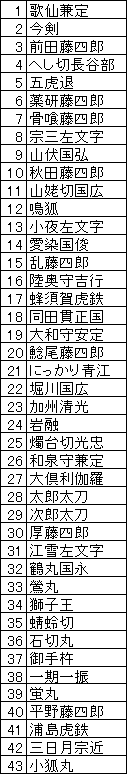 今まで1回しか出たことないのは三日月・小狐と平野藤四郎くらいかな…